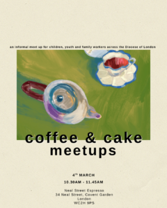 An informal meet up to connect and network with other children, youth and family workers across the Diocese of London and have a coffee and cake on the Diocesan Children & Youth Team.