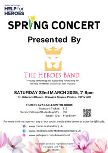 Music-lovers in Pimlico have been delighted to learn that the city-based Heroes Band has once again chosen St Gabriel’s Church, Warwick Square, Pimlico, for their Spring Concert.