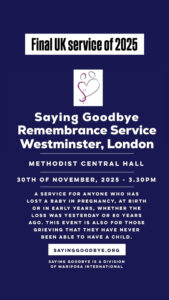 The Saying Goodbye services provide that time and space to gather together, and have each loss remembered. Since 2013 over 260 services have been held in 7 countries allowing tens of thousands of people to find healing and solace…